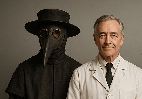 Efectivamente, durante la época medieval un médico parecía más a un sacerdote. Y no era de extrañar ya que había una fuerte relación entre la medicina y la religión. La mayoría de los tratamientos consistían en remedios naturales, por ejemplo, el sangrado para desechar la enfermedad. Todavía en pleno Renacimiento (siglos XV-XVI), los médicos no gozaban de buena reputación en la sociedad. Se acuñó el término “matasanos” y hasta fueron culpados de expandir epidemias. En dibujos y pinturas de médicos de la época nunca se ven vestidos de blanco. De hecho, el uniforme médico era una bata negra con máscara en forma de pico, para protegerse de la «peste negra», una epidemia de aquellos tiempos. Con este traje, tenían una apariencia tenebrosa, parecían unos zamuros.